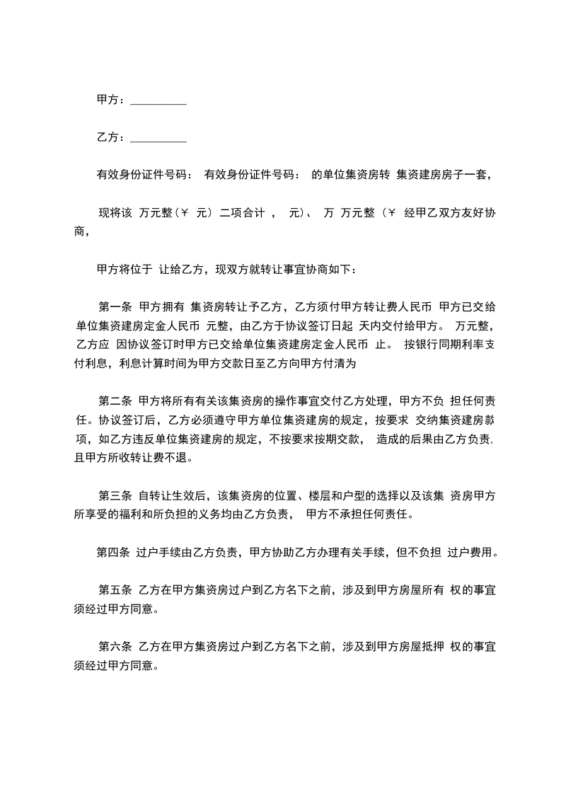 4、甲方同意收取乙方缴纳的集资款项,并以自身的名义向其单位缴纳,若单位同意由乙方名义缴纳,则乙方有权自行缴纳集资款项。