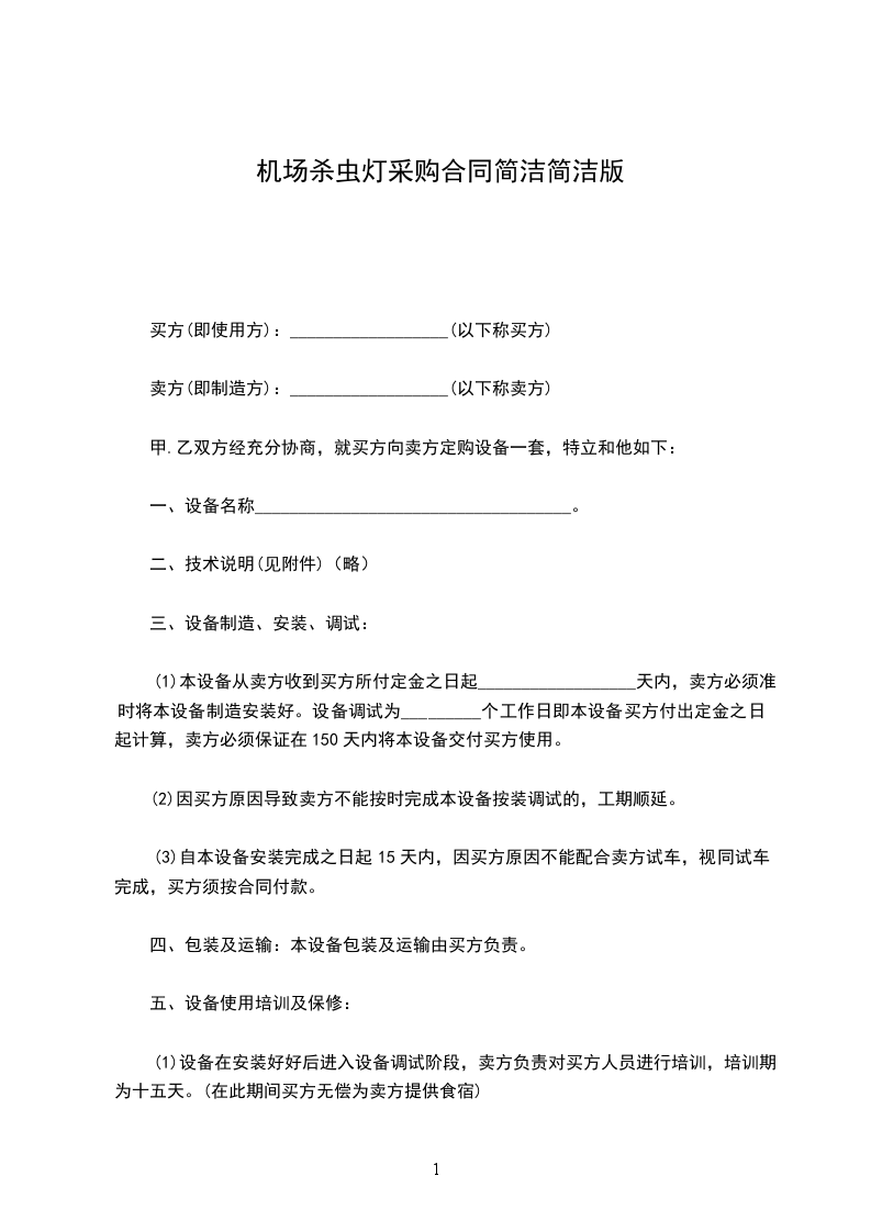 (1)本设备从卖方收到买方所付定金之日起__________________天内,卖方必须准时将本设备制造安装好。设备调试为_________个工作日即本设备买方付出定金之日起计算,卖方必须保证在150天内将本设备交付买方使用。