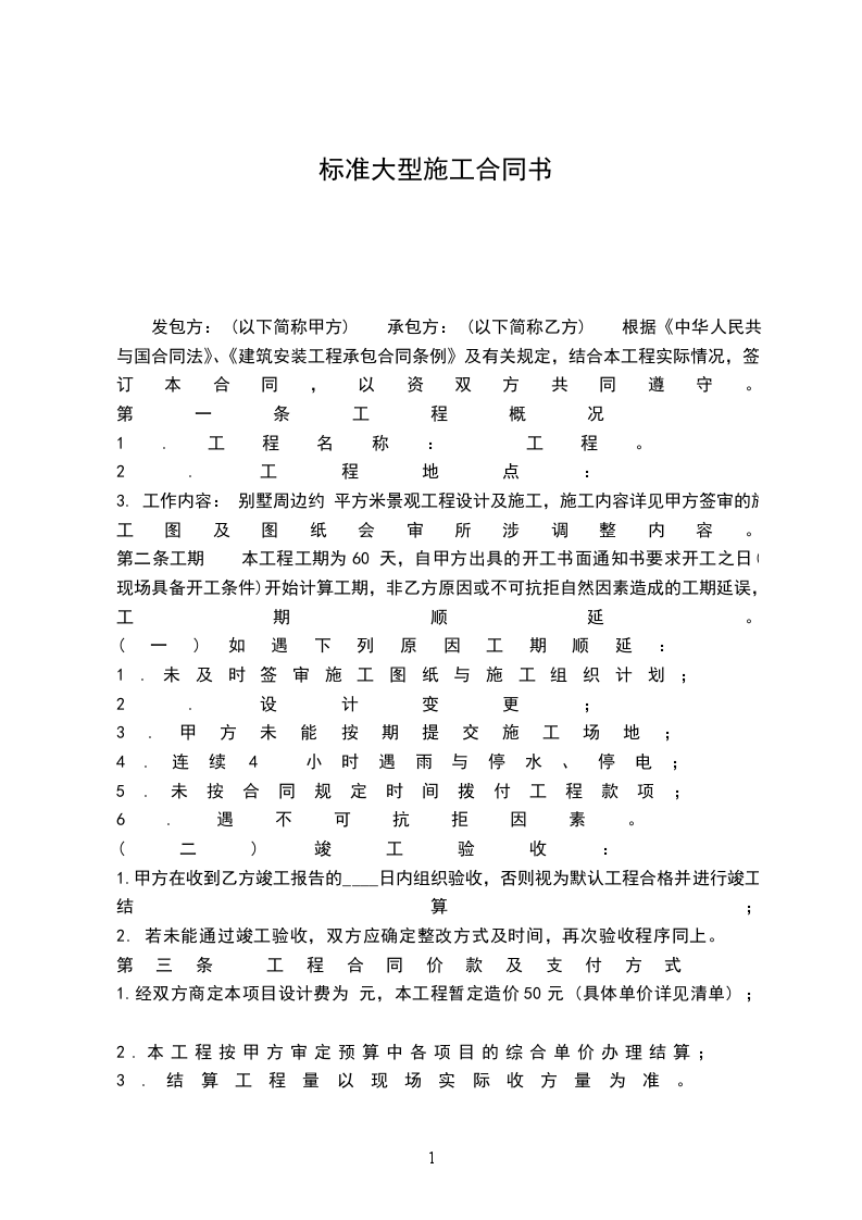 发包方: (以下简称甲方) 承包方: (以下简称乙方) 根据《中华人民共与国民法典》、《建筑安装工程承包合同条例》及有关规定,结合本工程实际情况,签订本合同,以资双方共同遵守。