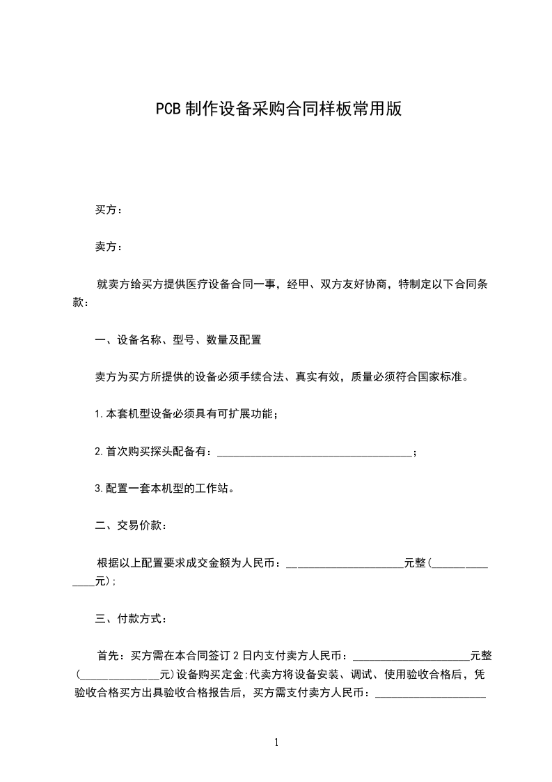 就卖方给买方提供医疗设备合同一事,经甲、双方友好协商,特制定以下合同条款: