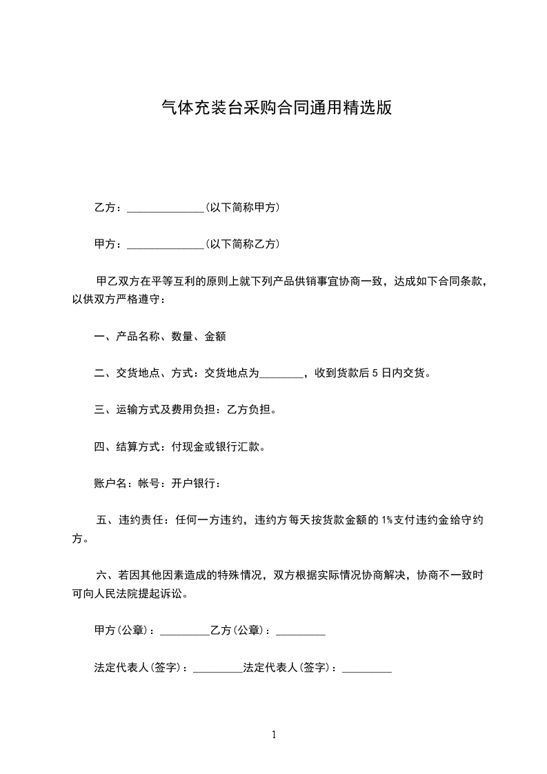 气体充装台采购合同通用精选版