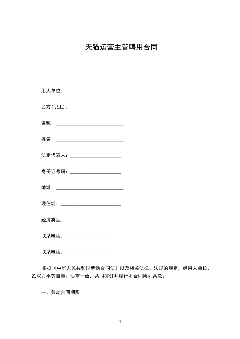 (一) 本合同为固定期限劳动合同。