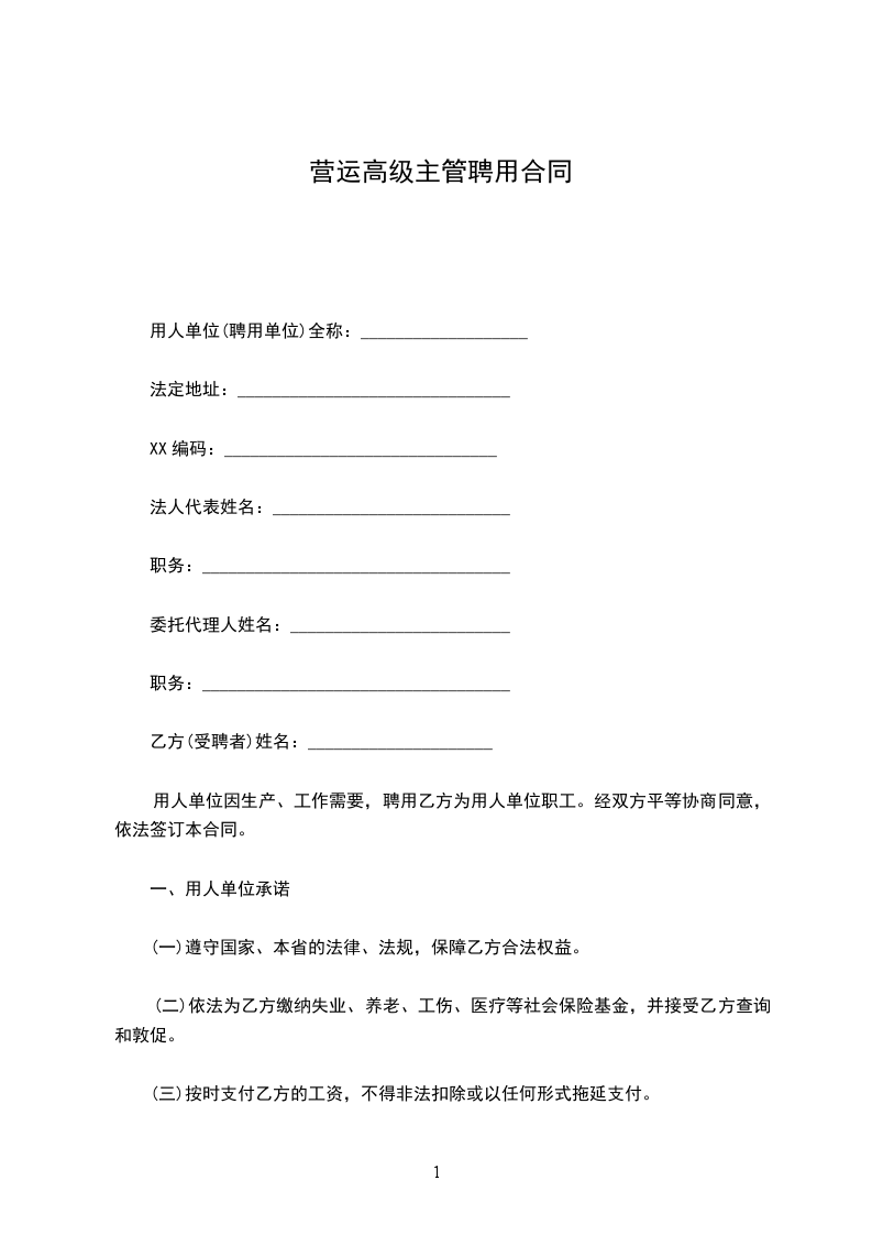 (一) 乙方同意根据用人单位工作需要,担任_______________岗位(工种)工作,用人单位应提供必要的生产(工作)条件。