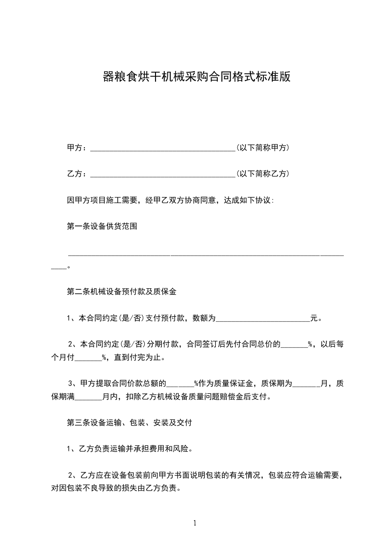1、乙方保证出售的机器设备是全新未使用的,所具有的性能与说明书和国家相关标准相符。
