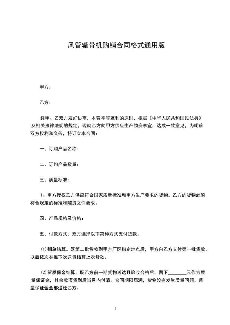 (2)留质保金结算。既乙方前一期货物送达且验收合格后,留下________元作为质量保证金,其余款项货到后当月内付清。合同期限届满,货物没有发生质量问题,质量保证金全部退还乙方。