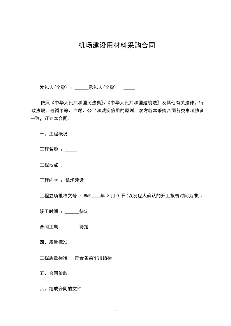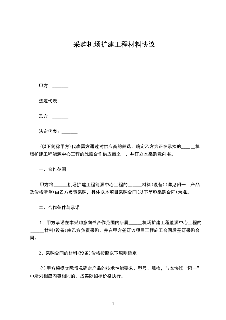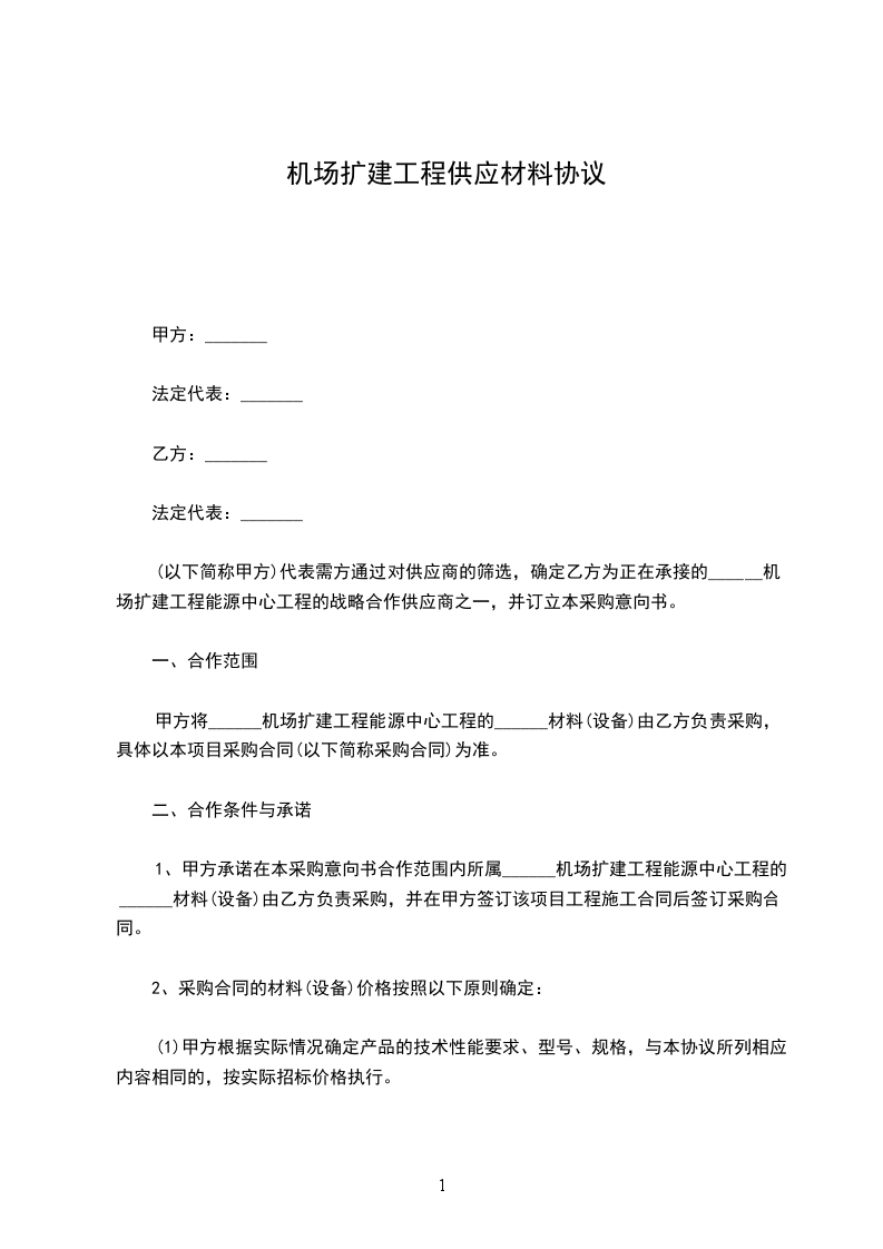 1、甲方承诺在本采购意向书合作范围内所属______机场扩建工程能源中心工程的______材料由乙方负责采购,并在甲方签订该项目工程施工合同后签订采购合同。