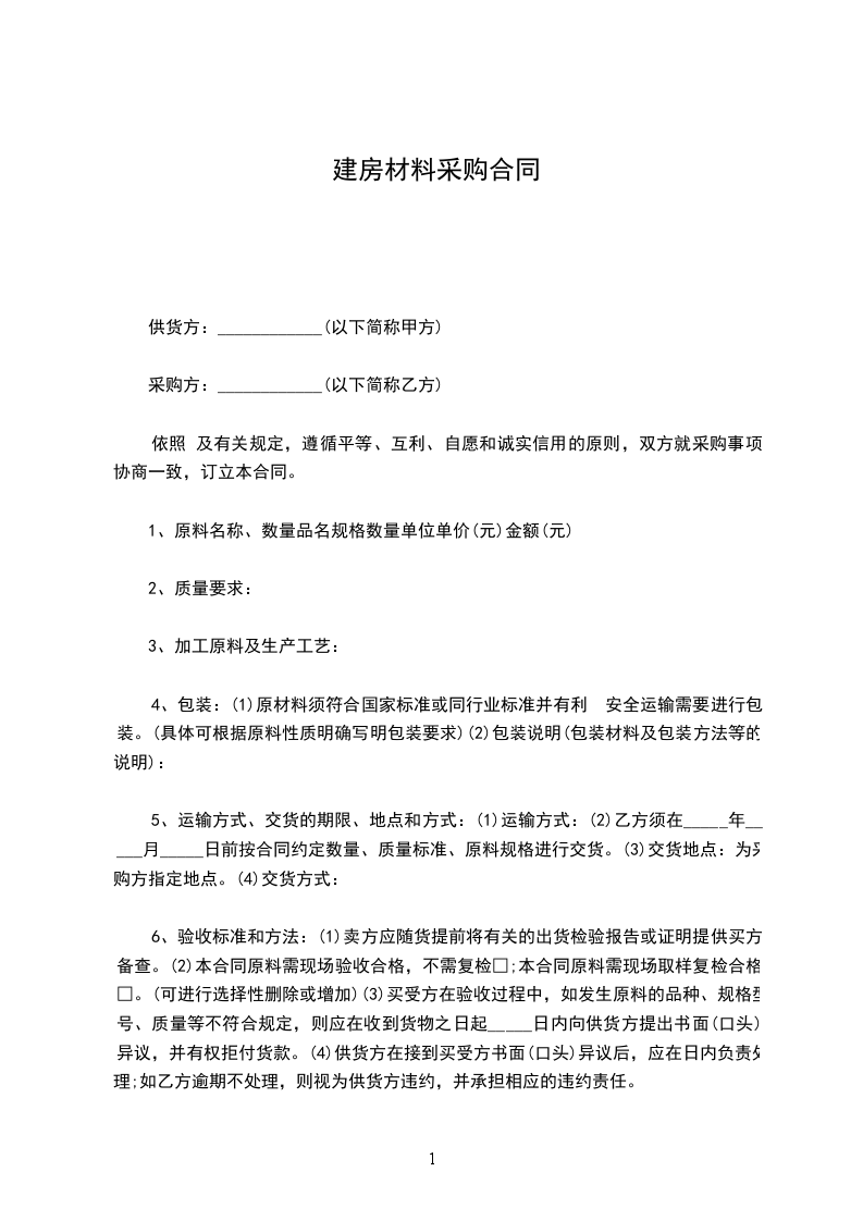 5、乙方承诺提供的本工程货物皆为符合国家标准和材料技术文件要求的合格产品,验收合格率达到100%,并保证采购及时性和不间断性,保证满足工程施工进度需要;如有必要乙方派有经验技术人员到现场指导工作。
