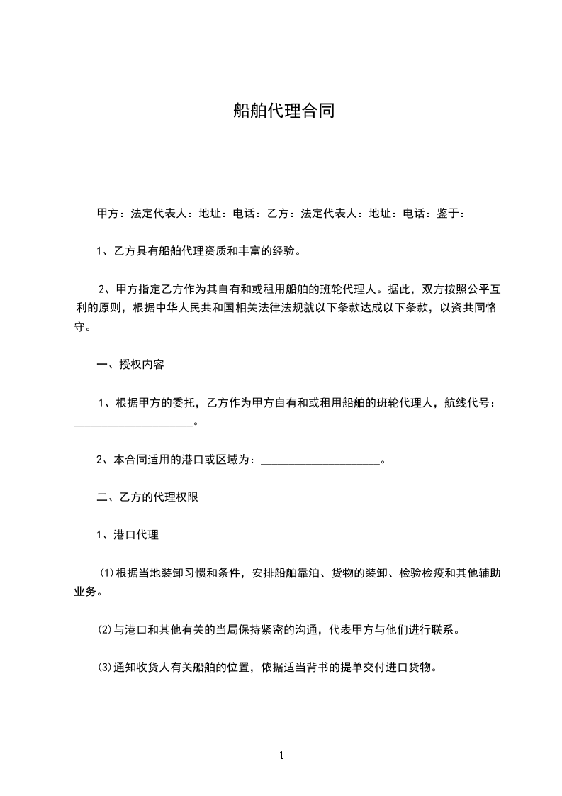 1、根据甲方的委托,乙方作为甲方自有和或租用船舶的班轮代理人,航线代号:_____________________。