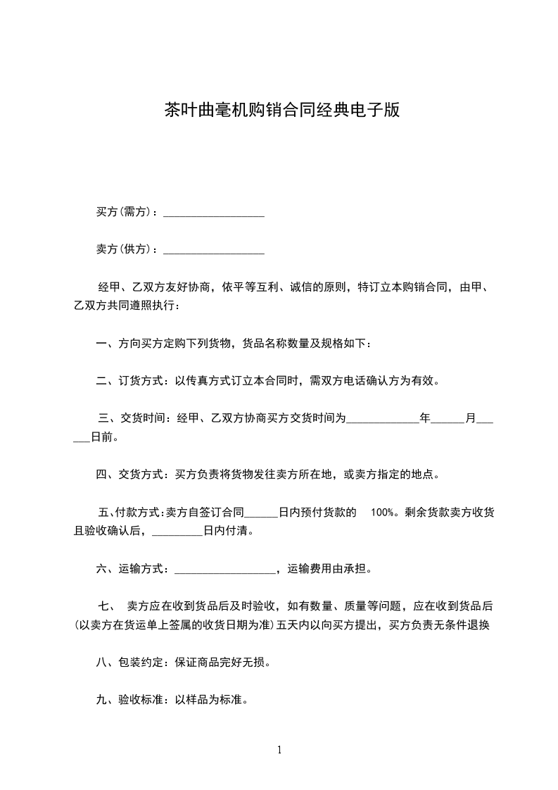 十四、本合同一式两份,甲乙双方各执一份,并自签字之日起生效,双方例行完本次购销事宜后,合同终止。