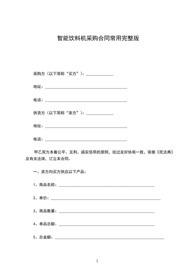 一、卖方向买方供应以下产品: