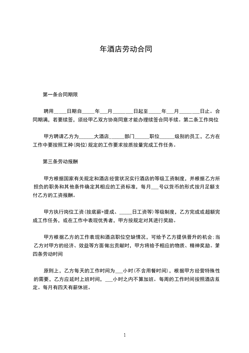 甲方聘请乙方为______大酒店______部门______职位______级别的员工,乙方在工作中要按照工种(岗位)规定的工作要求按质按量完成工作任务。
