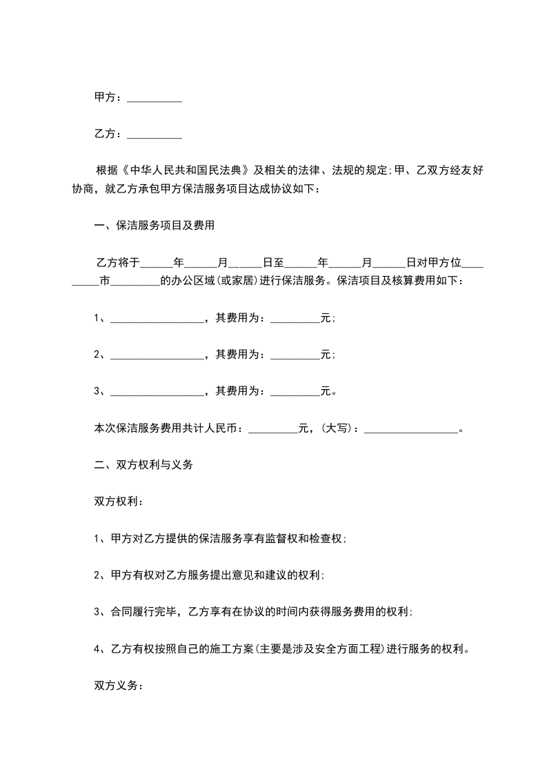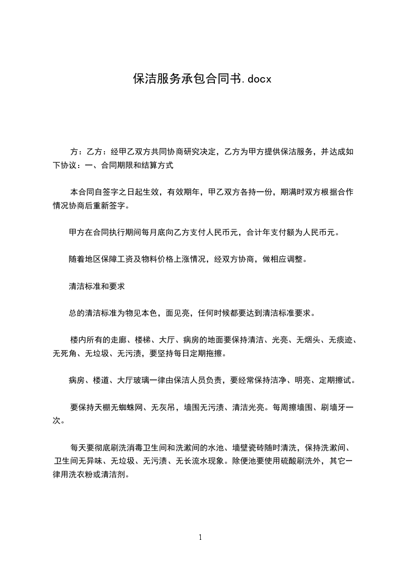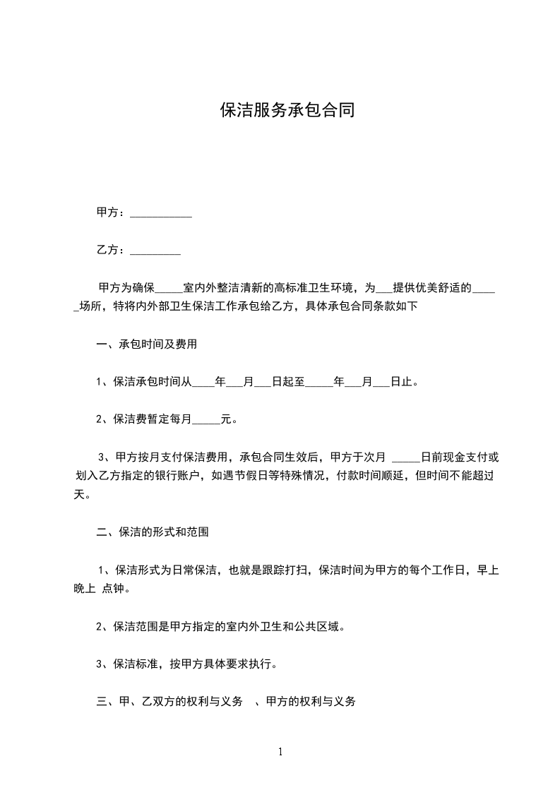 1、保洁承包时间从____年___月___日起至_____年___月___日止。