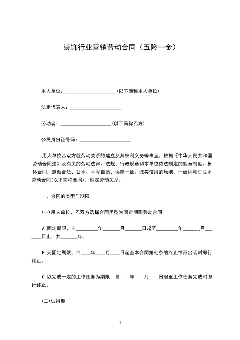 (一)用人单位、乙双方选择合同类型为固定期限劳动合同。
