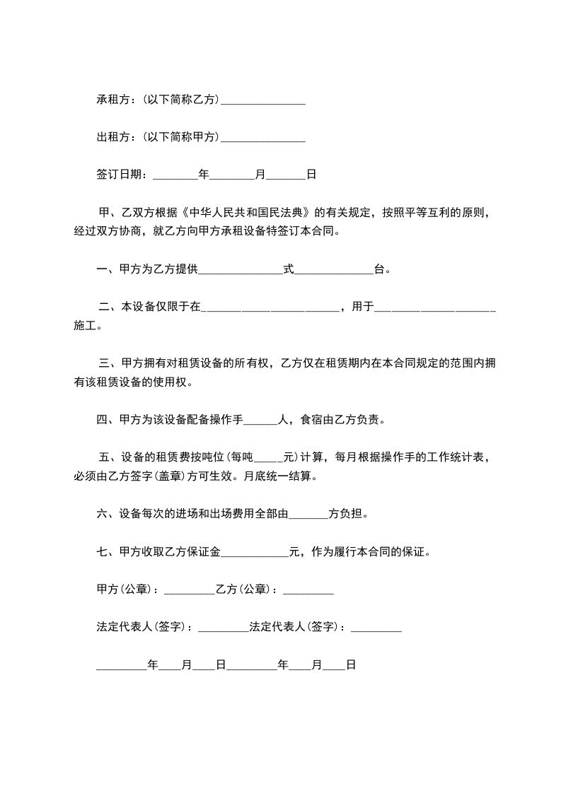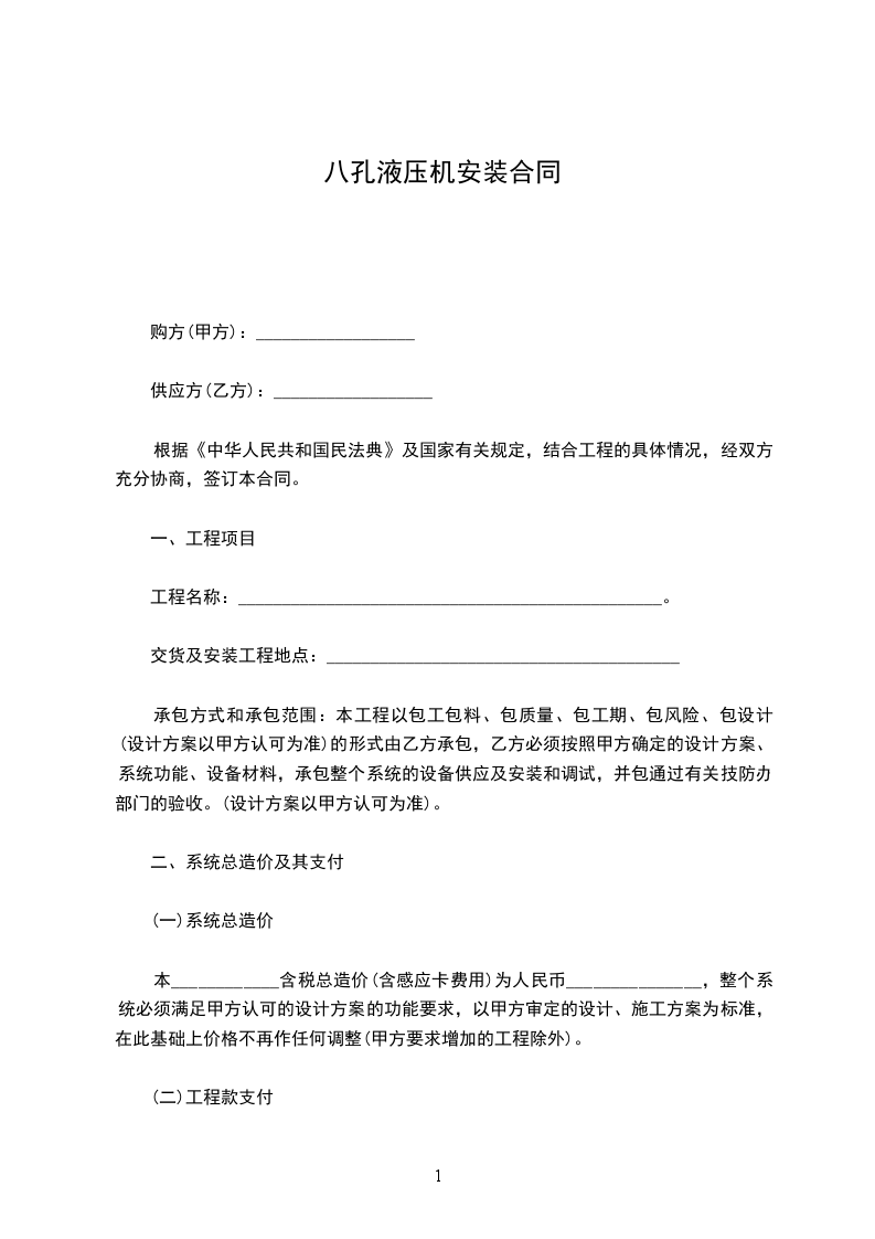 五、付款方式:合同签订后,甲方先付合同款的______%订金,货到指定交货地点时再交付合同款的______%,剩余尾款在安装验收完毕______个工作日内付清。