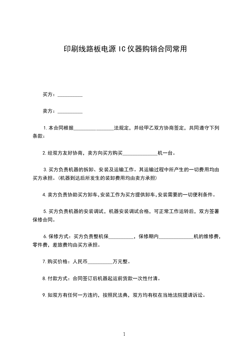 印刷线路板电源IC仪器购销合同常用
