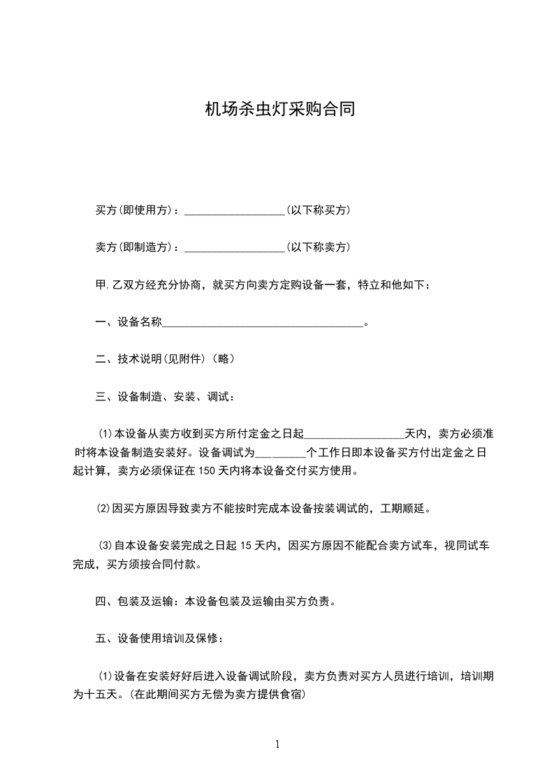 (1)本设备从卖方收到买方所付定金之日起__________________天内,卖方必须准时将本设备制造安装好。设备调试为_________个工作日即本设备买方付出定金之日起计算,卖方必须保证在150天内将本设备交付买方使用。