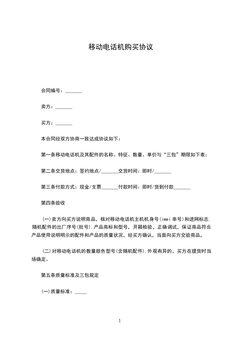 (二)对移动电话机的数量颜色型号(含随机配件).外观有异的,买方在提货时当场确定。
