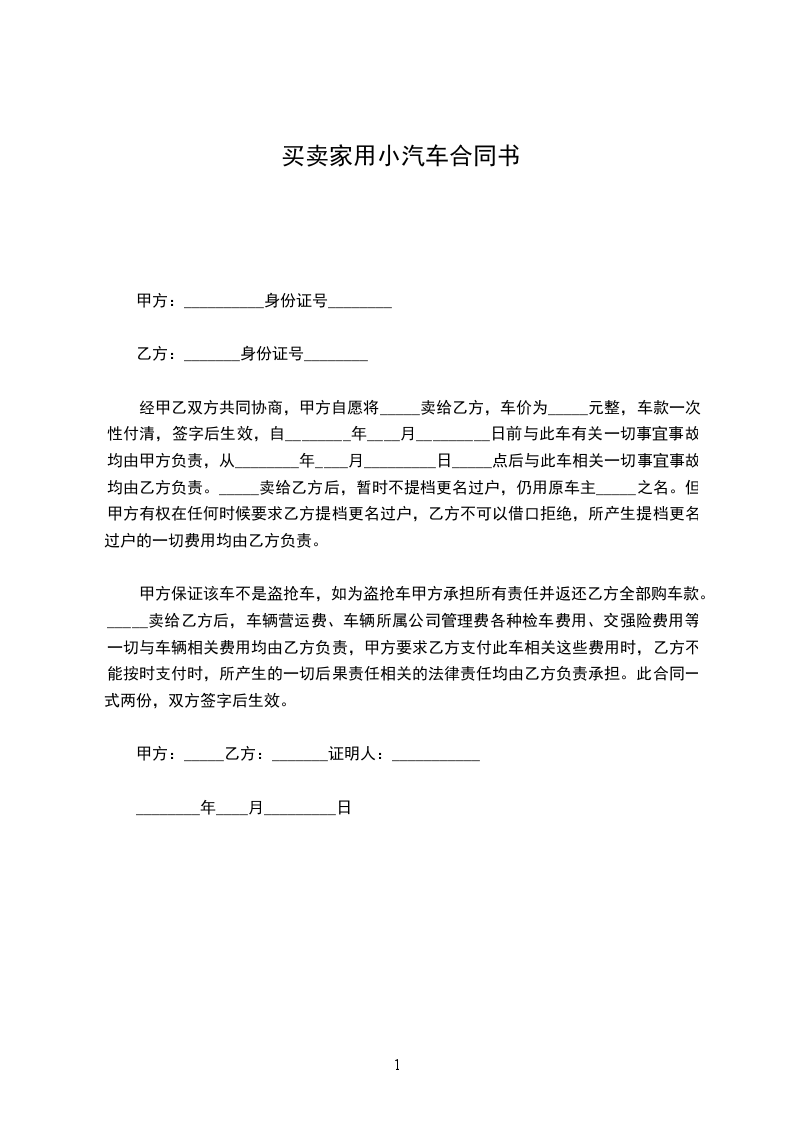 经甲乙双方共同协商,甲方自愿将_____卖给乙方,车价为_____元整,车款一次性付清,签字后生效,自________年____月_________日前与此车有关一切事宜事故均由甲方负责,从________年____月_________日_____点后与此车相关一切事宜事故均由乙方负责。_____卖给乙方后,暂时不提档更名过户,仍用原车主_____之名。但甲方有权在任何时候要求乙方提档更名过户,乙方不可以借口拒绝,所产生提档更名过户的一切费用均由乙方负责。