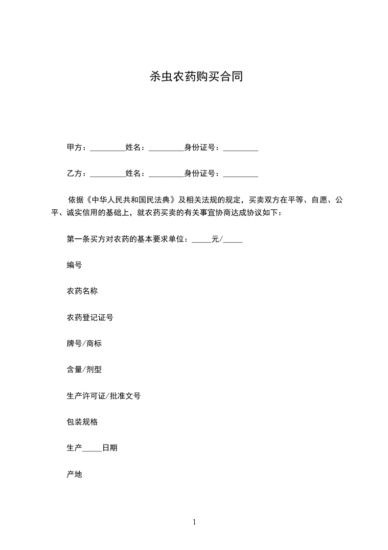 依据《中华人民共和国民法典》及相关法规的规定,买卖双方在平等、自愿、公平、诚实信用的基础上,就农药买卖的有关事宜协商达成协议如下: