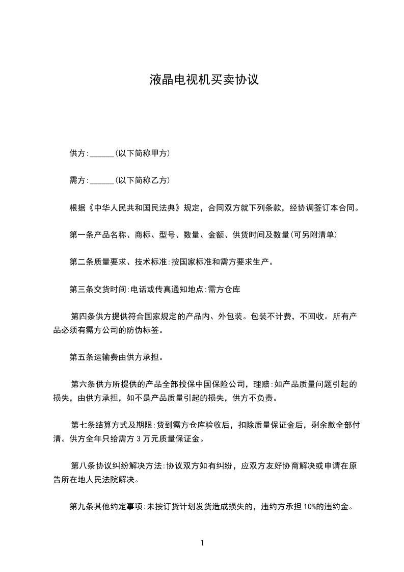供方:______(以下简称甲方)