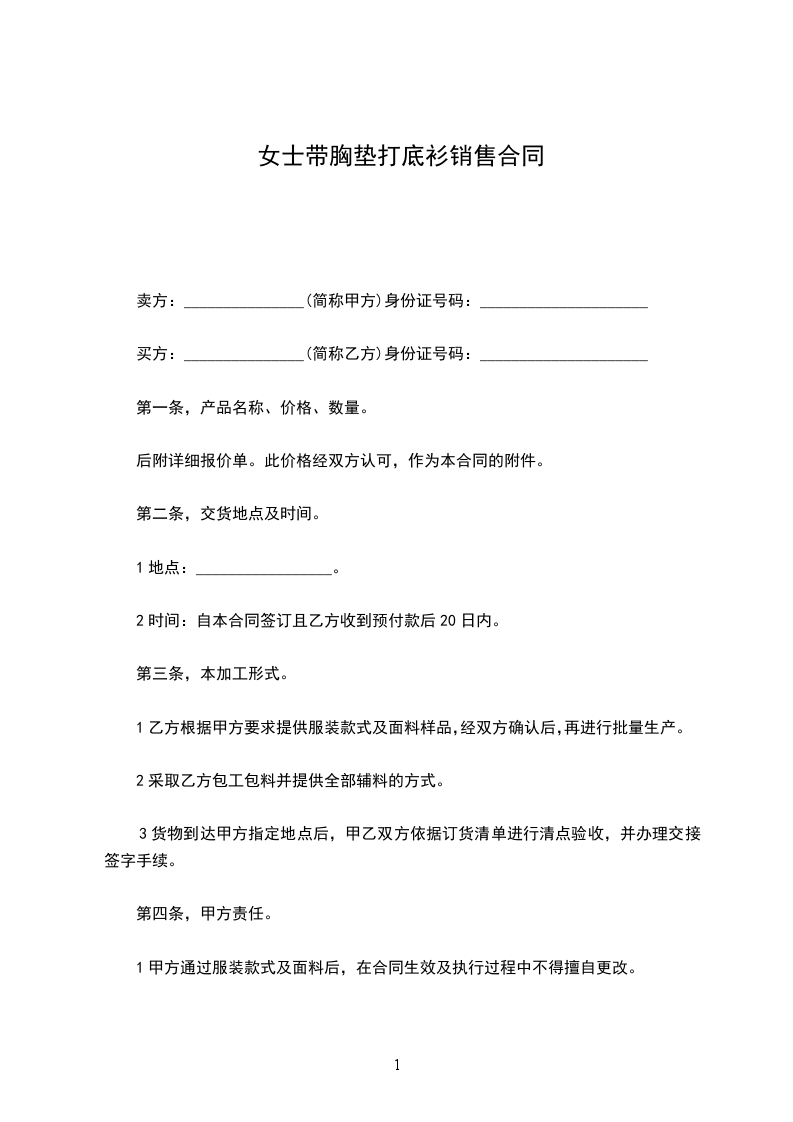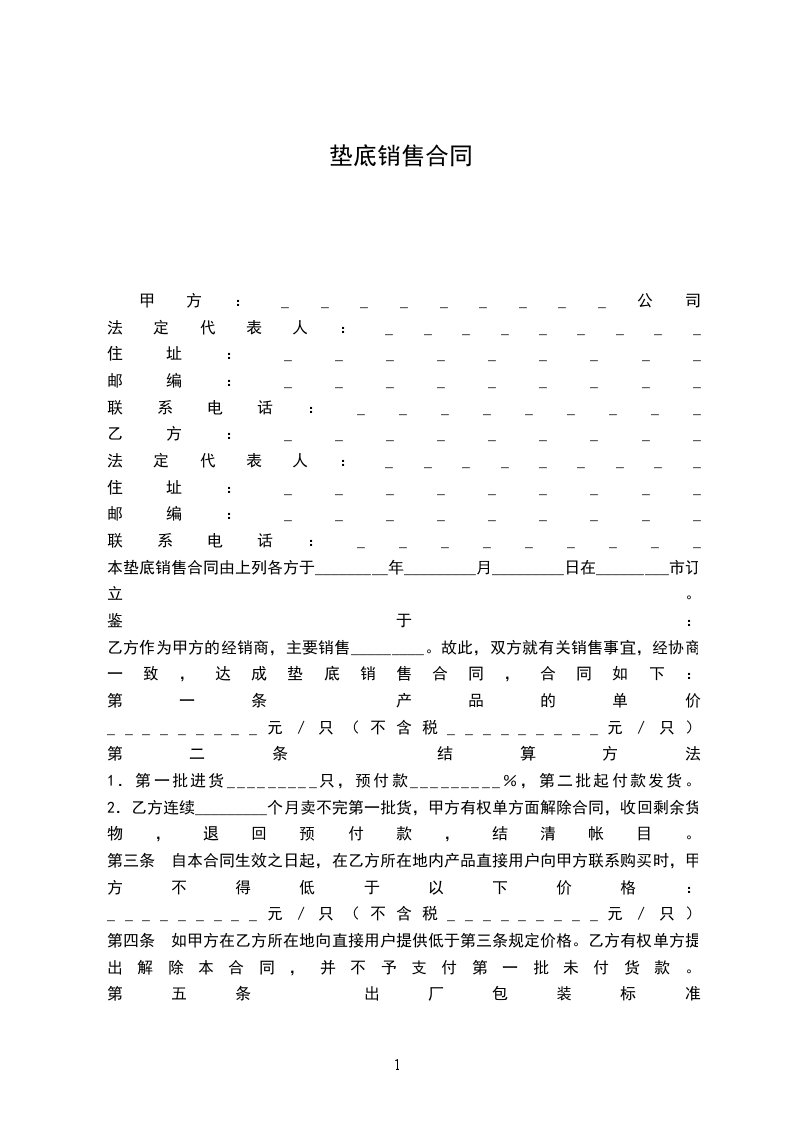 本垫底销售合同由上列各方于_________年_________月_________日在_________市订立。