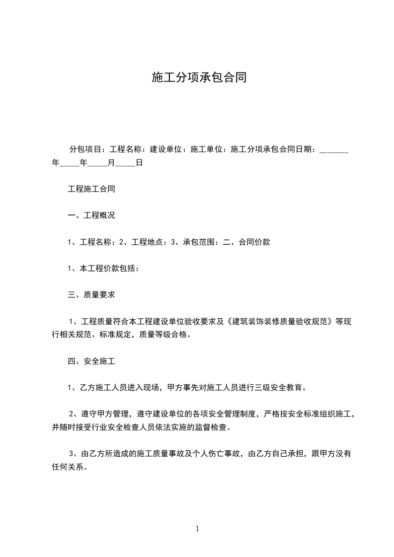 三、 承包单价的组成及承包方式:
