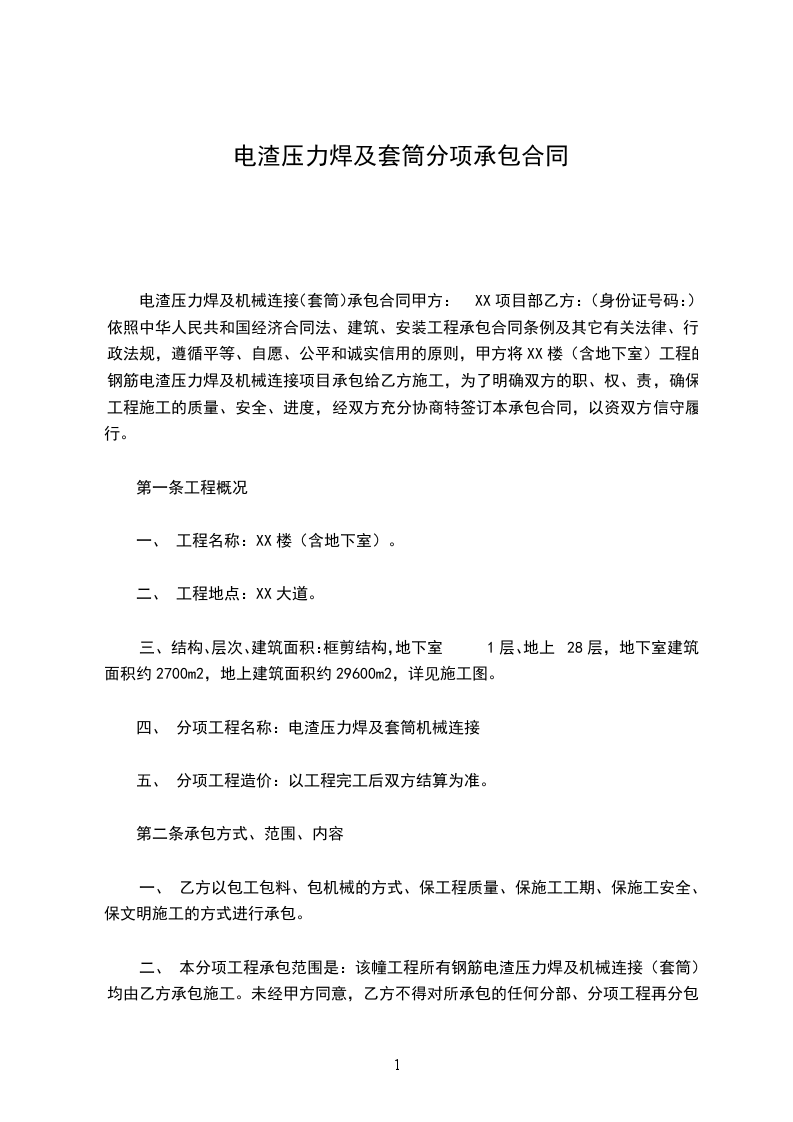 2:承包方式为:只包人工费,不包材料费。