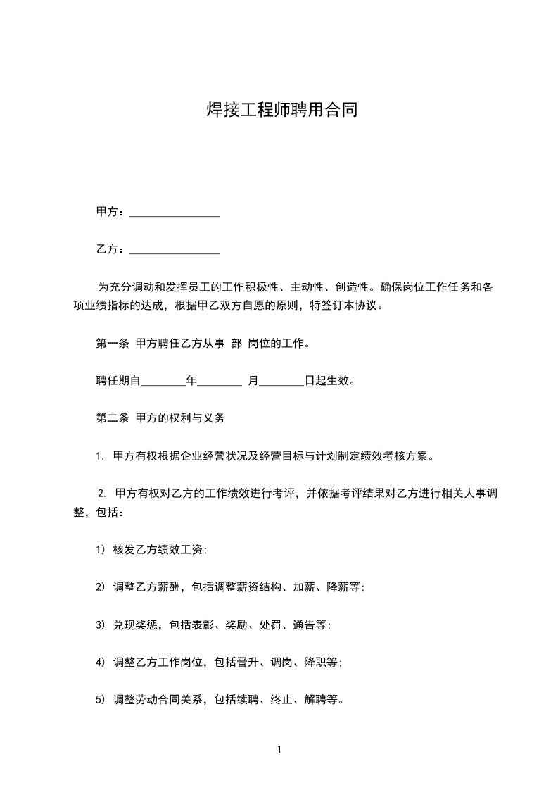 第一条 甲方聘任乙方从事 部 岗位的工作。