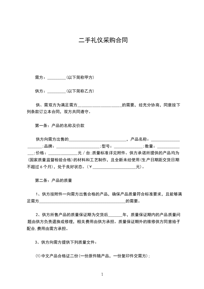 礼仪服装采购合同