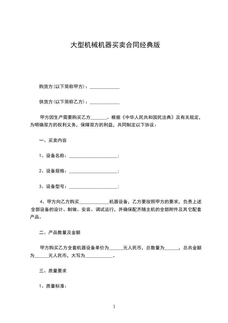 1、卖方保证出售的机器设备是全新未使用的,所具有的性能与说明书和国家相关标准相符。