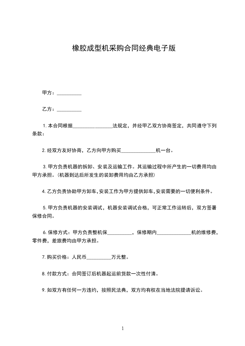 (1)卖方在_____日内无条件更换新的机械设备。