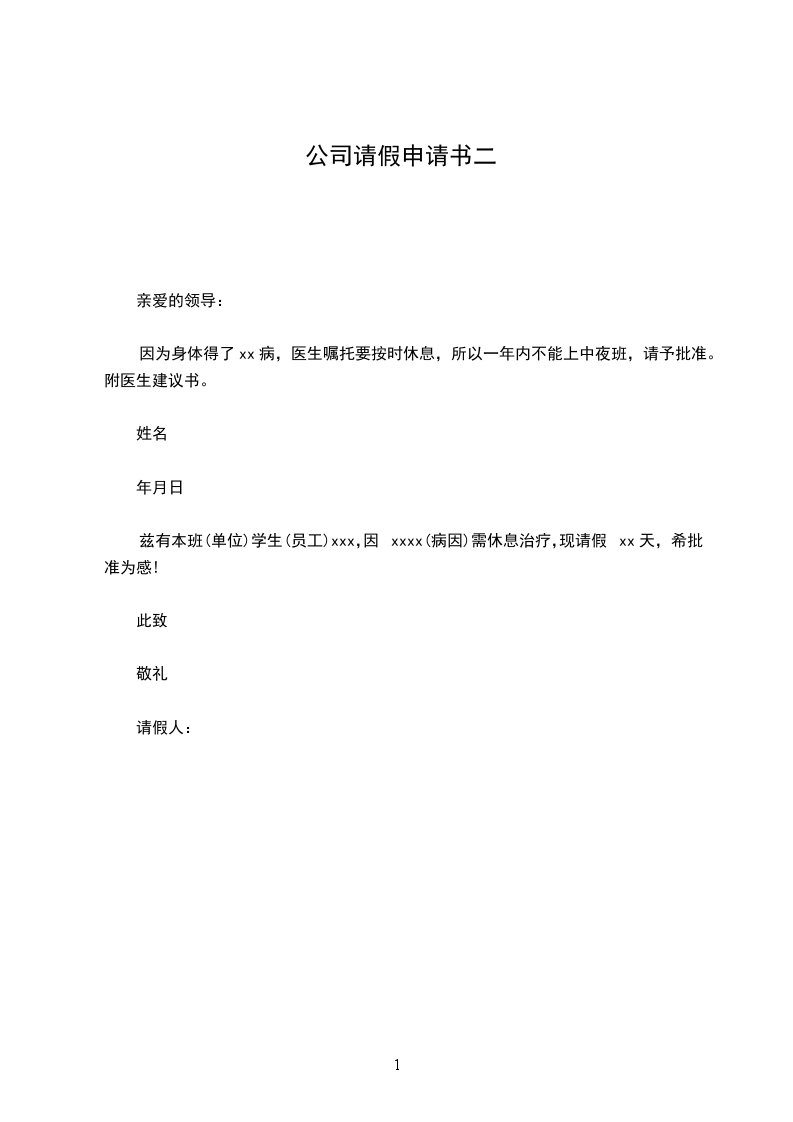 兹有本班(单位)学生(员工)xxx,因xxxx(病因)需休息治疗,现请假xx天,希批准为感!