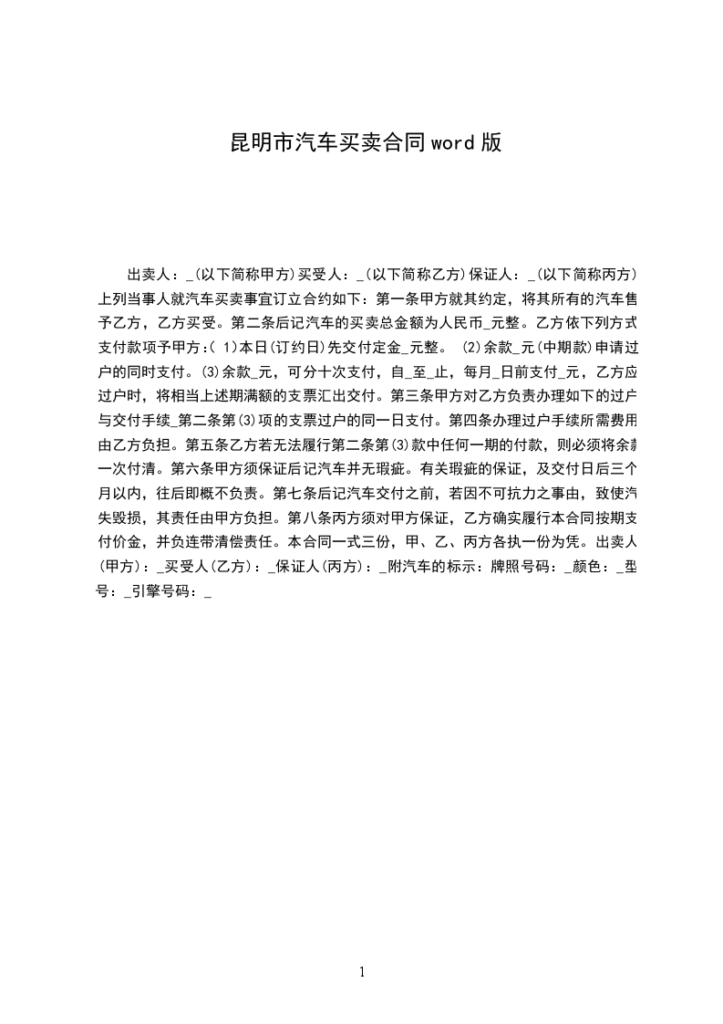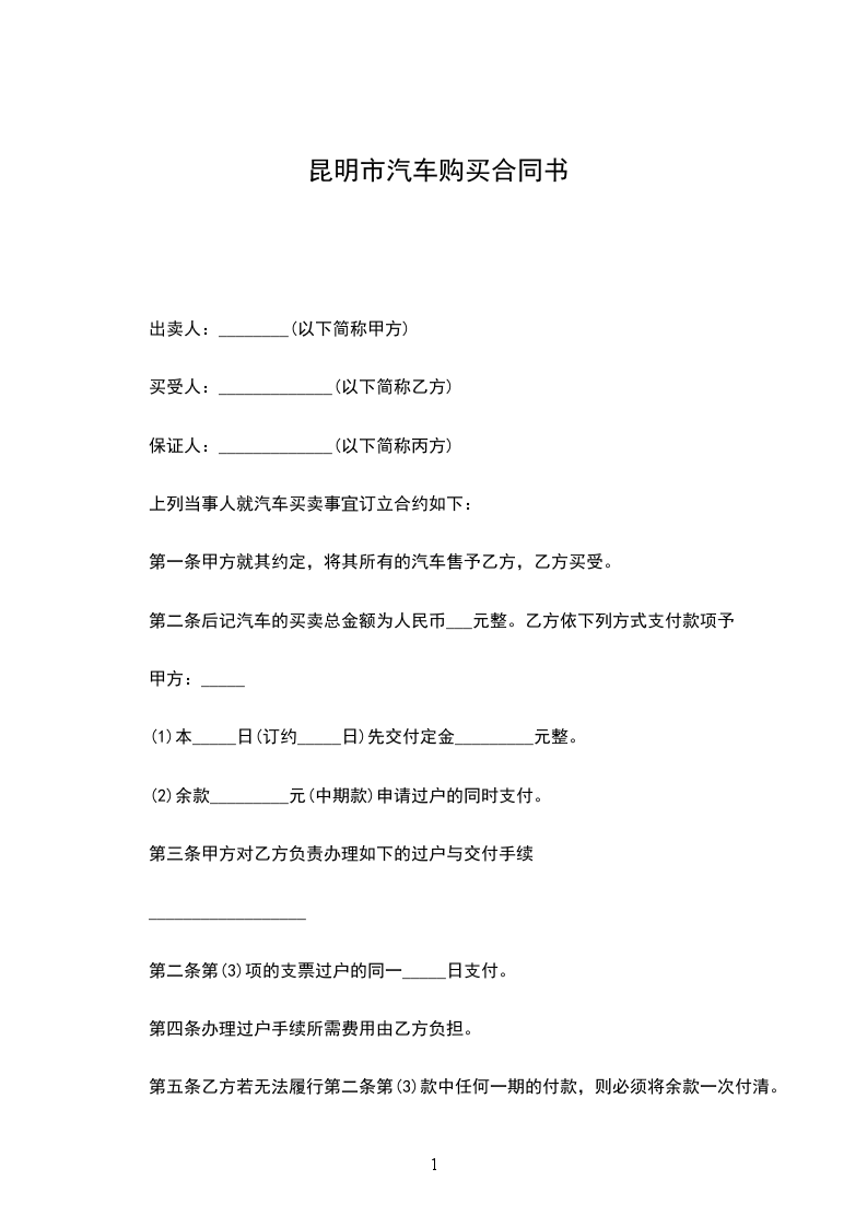 上列当事人就汽车买卖事宜订立合约如下: