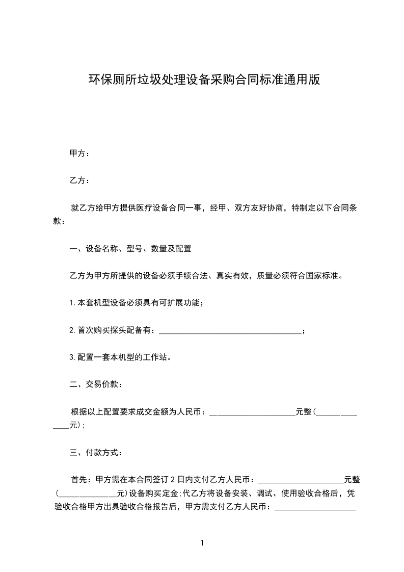 就乙方给甲方提供医疗设备合同一事,经甲、双方友好协商,特制定以下合同条款: