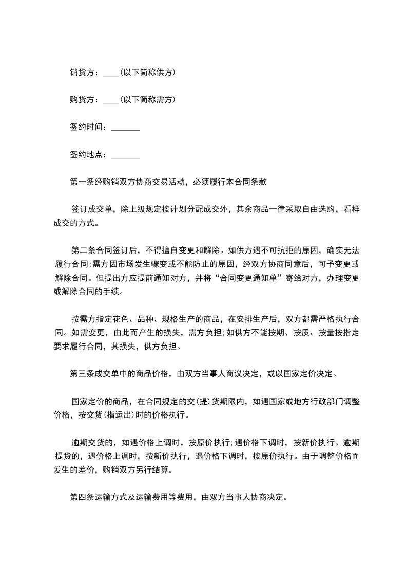 签订成交单,除上级规定按计划分配成交外,其余商品一律采取自由选购,看样成交的方式。
