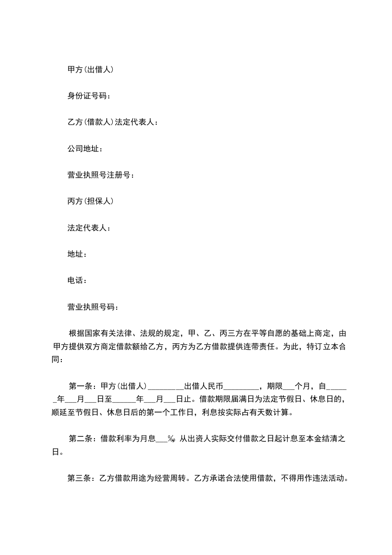 根据国家有关法律、法规的规定,甲、乙、丙三方在平等自愿的基础上商定,由甲方提供双方商定借款额给乙方,丙方为乙方借款提供连带责任。为此,特订立本合同: