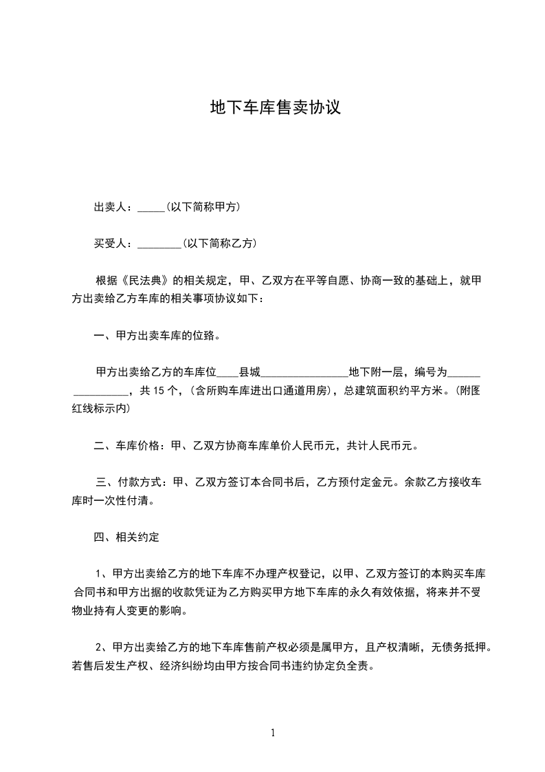 根据《民法典》的相关规定,甲、乙双方在平等自愿、协商一致的基础上,就甲方出卖给乙方车库的相关事项协议如下: