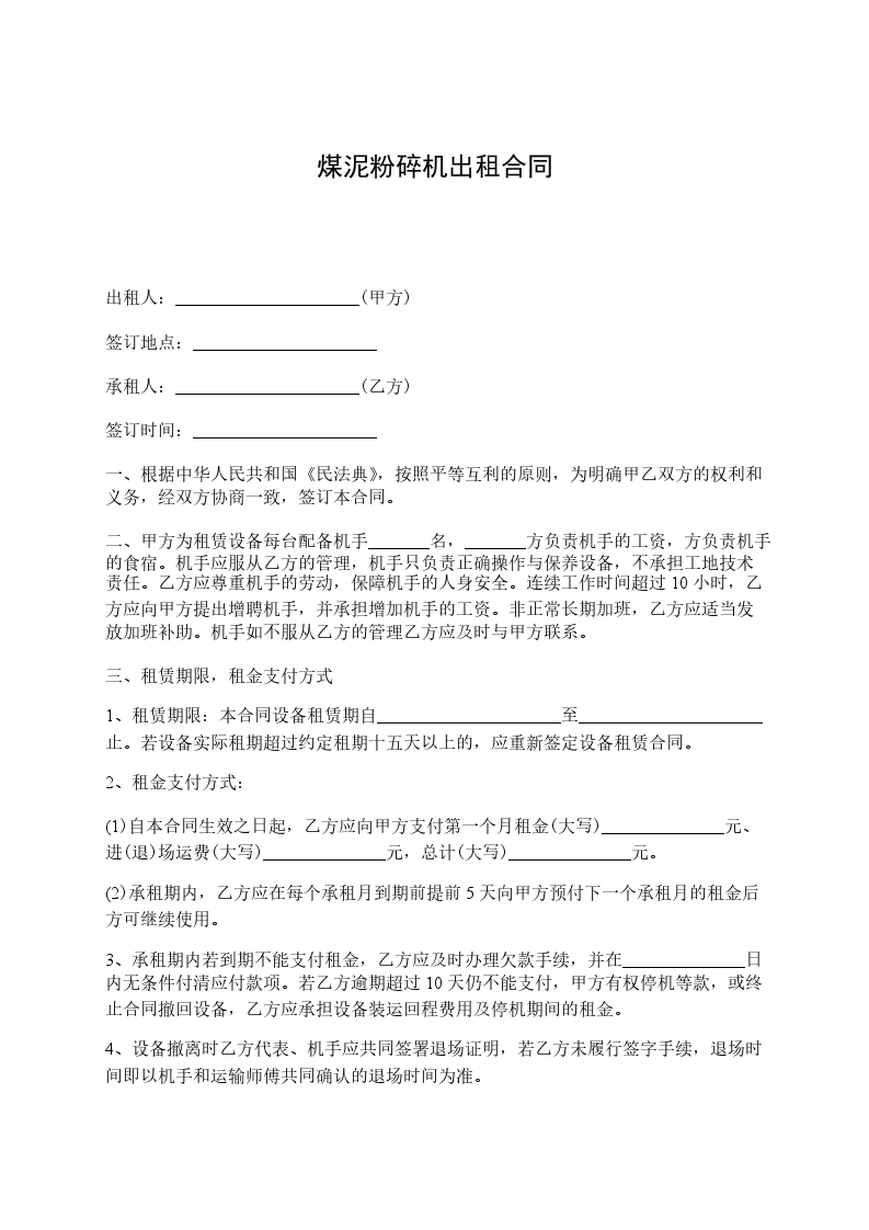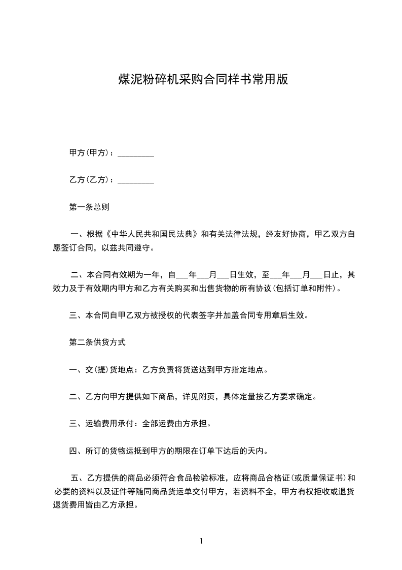 一、根据《中华人民共和国民法典》和有关法律法规,经友好协商,甲乙双方自愿签订合同,以兹共同遵守。
