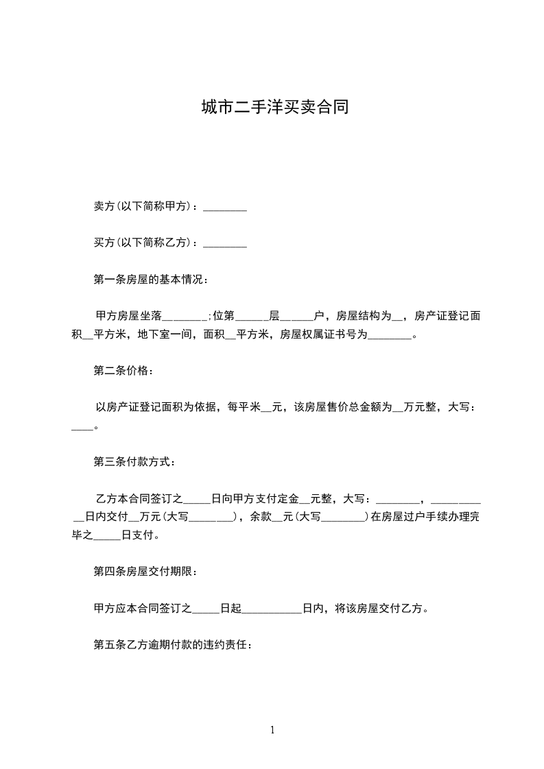 乙方本合同签订之_____日向甲方支付定金__元整,大写:________,___________日内交付__万元(大写________),余款__元(大写________)在房屋过户手续办理完毕之_____日支付。
