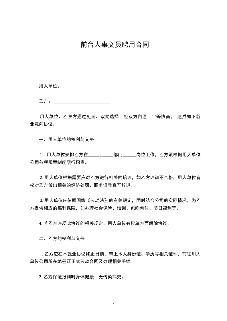 用人单位: _________________________乙方:_________________________