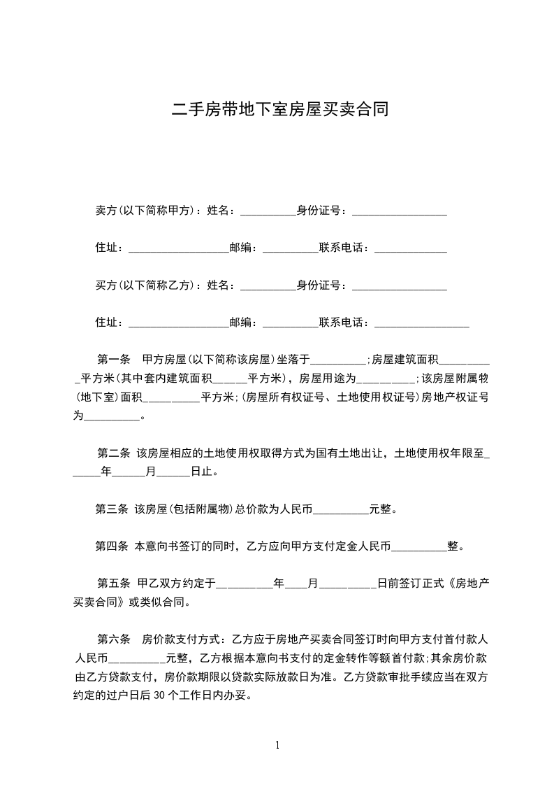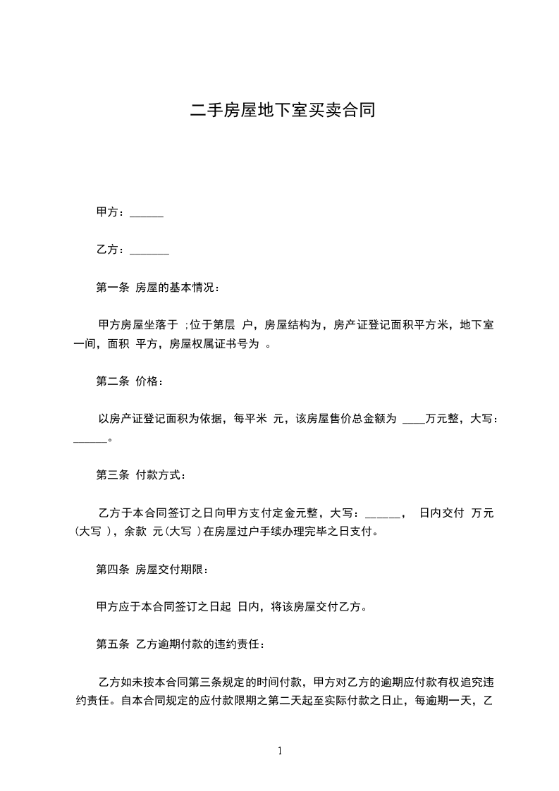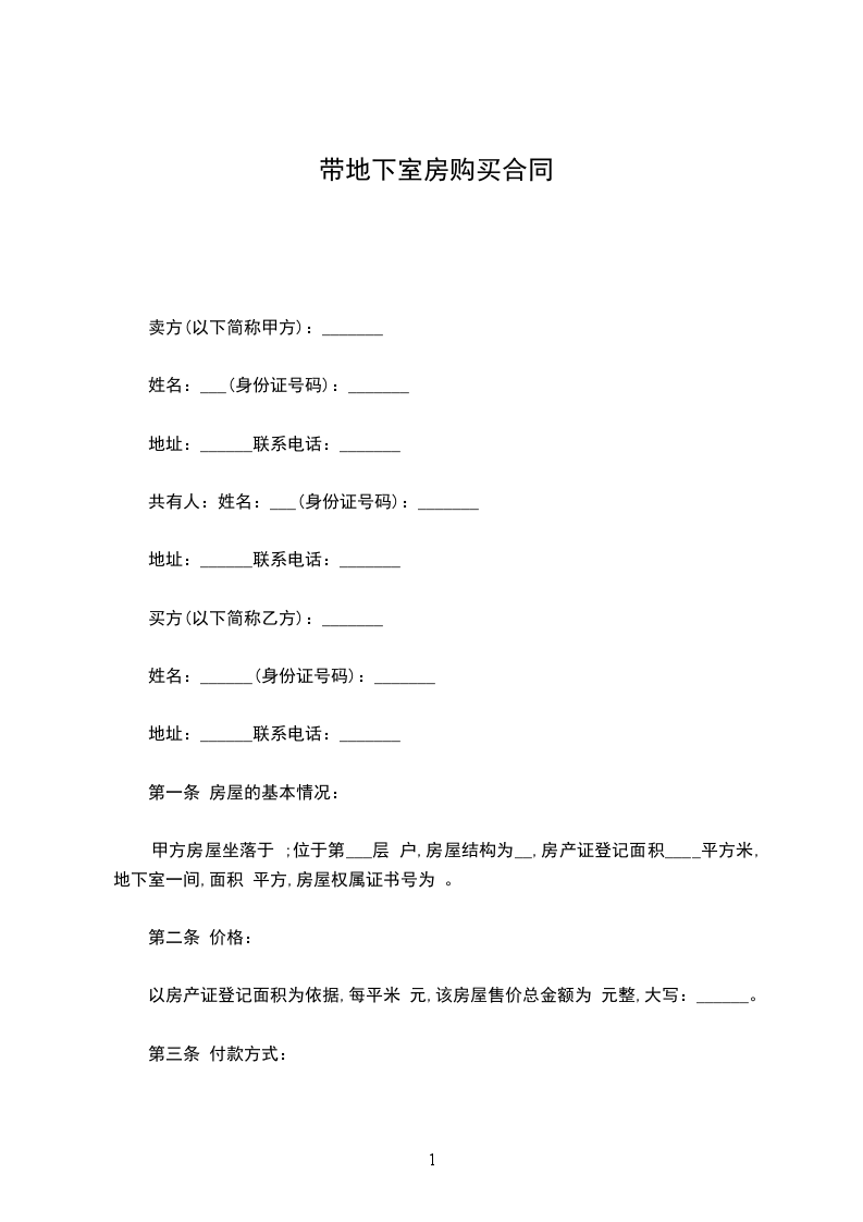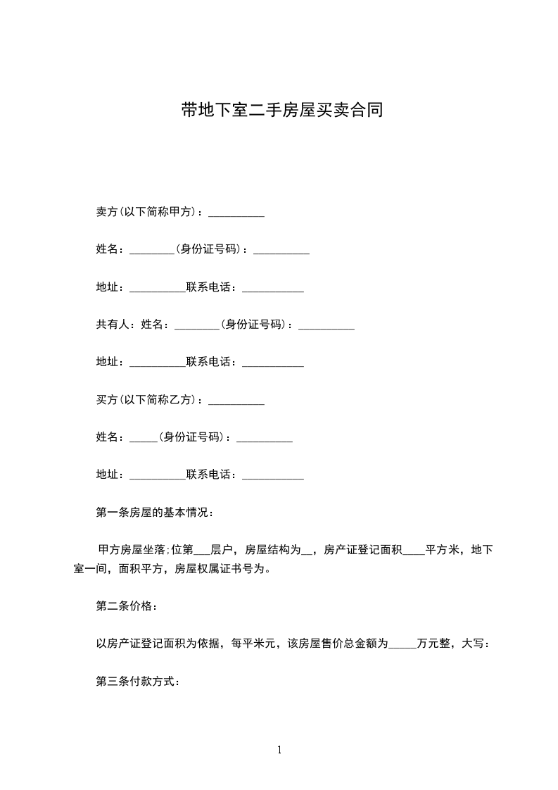甲方房屋坐落;位第___层户,房屋结构为__,房产证登记面积____平方米,地下室一间,面积平方,房屋权属证书号为.