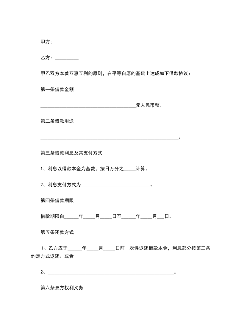 甲乙双方本着互惠互利的原则,在平等自愿的基础上达成如下借款协议: