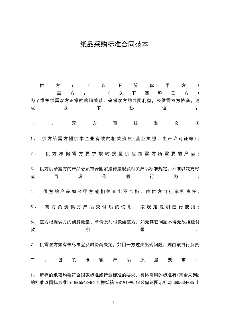 为了维护供需双方正常的购销关系,确保双方的共同利益,经供需双方协商,达成以下协议: