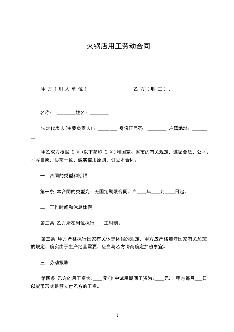 一、合同的类型和期限