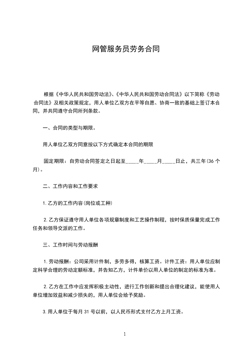 第一条用人单位录用乙方从事______(工作名称)。