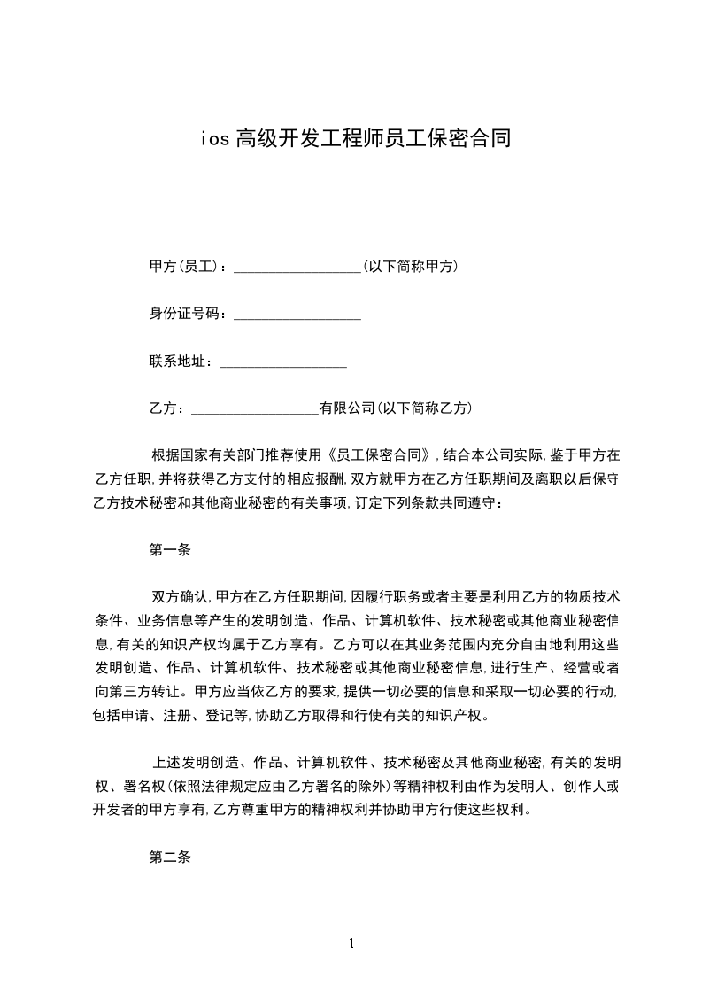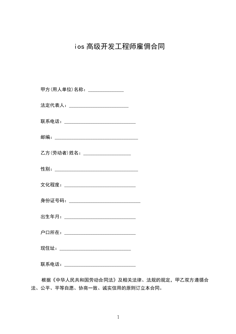 ios高级开发工程师聘用合同