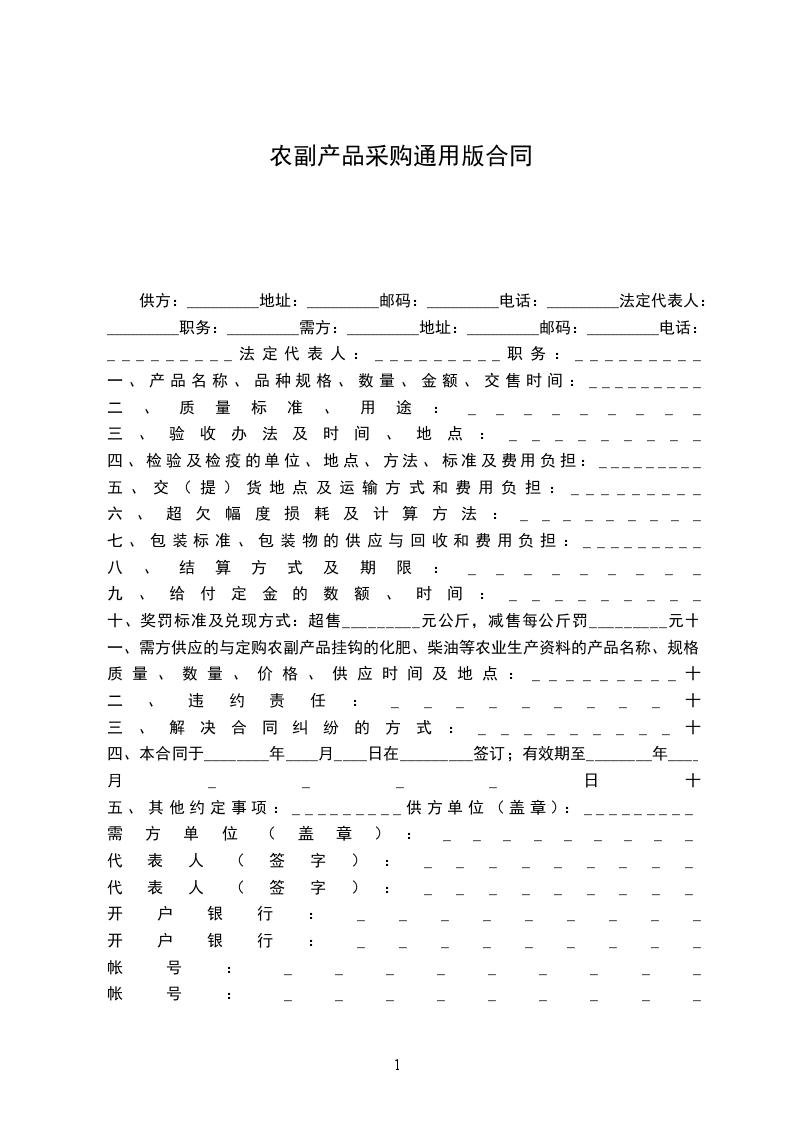 供方:_________地址:_________邮码:_________电话:_________法定代表人:_________职务:_________需方:_________地址:_________邮码:_________电话:_________法定代表人:_________职务:_________