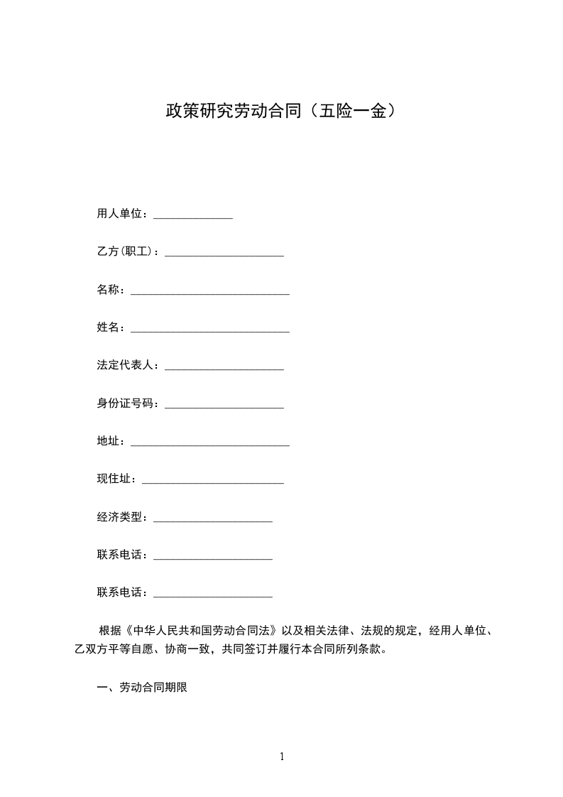 一、劳动合同期限