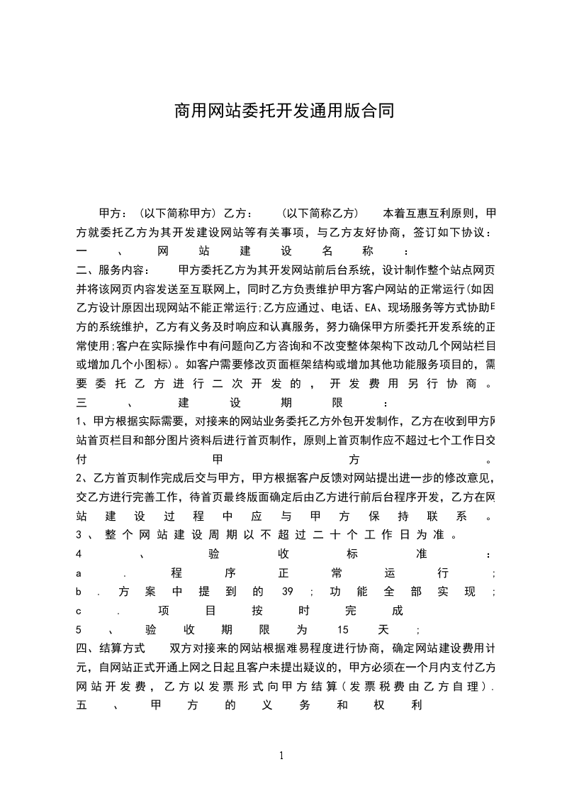 甲方: (以下简称甲方) 乙方: (以下简称乙方) 本着互惠互利原则,甲方就委托乙方为其开发建设网站等有关事项,与乙方友好协商,签订如下协议: