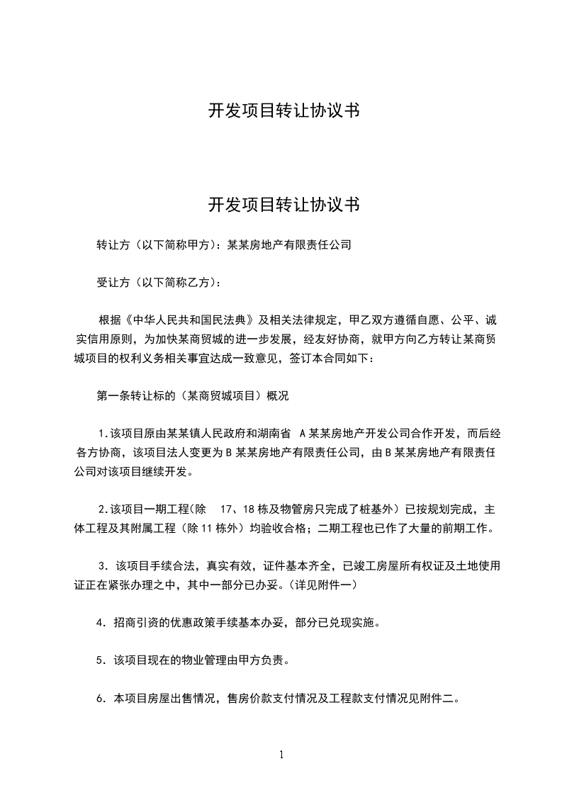 根据《中华人民共和国民法典》及相关法律规定,甲乙双方遵循自愿、公平、诚实信用原则,为加快某商贸城的进一步发展,经友好协商,就甲方向乙方转让某商贸城项目的权利义务相关事宜达成一致意见,签订本合同如下: